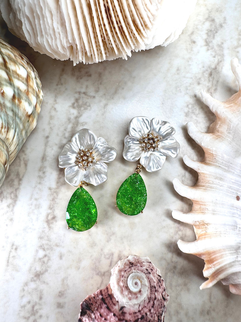 Aretes de flores con zirconias , piedras naturales y cristal .